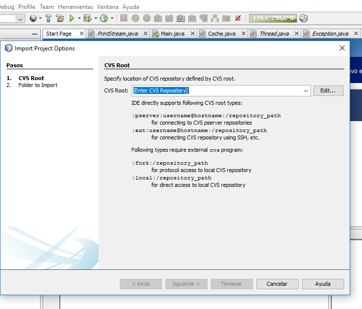 - Si CVS está incorporado a NetBeans, dispondremos de un conjunto de clases Java que imitan los comandos clásicos de CVS.