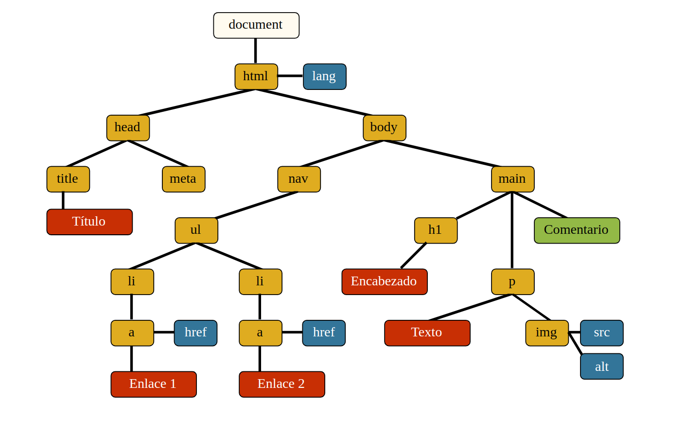 Por ejemplo, el atributo HTML type es estándar para el elemento HTML input pero no para el elemento HTML p.