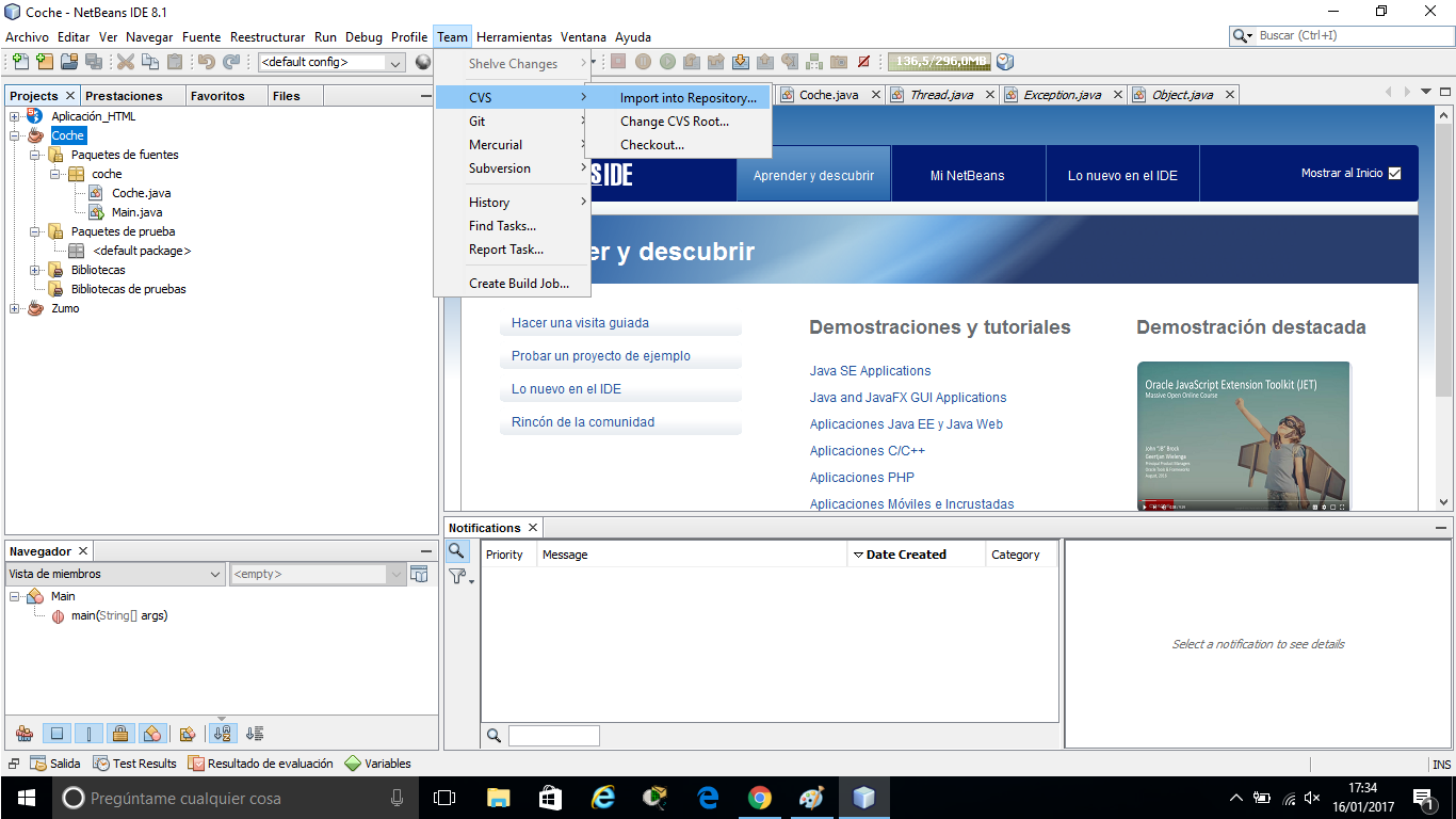 - Si CVS está incorporado a NetBeans, dispondremos de un conjunto de clases Java que imitan los comandos clásicos de CVS.